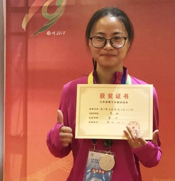 6月5日-8日,在省第十九届运动会职工部定向越野比赛中,我校体育教学部莫珊老师代表淮安市参赛,勇夺两枚奖牌,分别为女子中距离个人赛金牌和女子百米定向个人赛银牌。