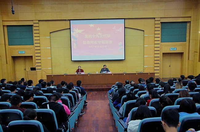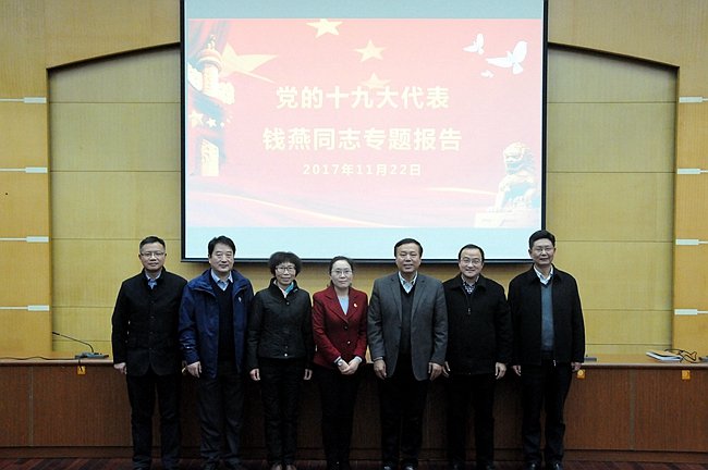 11月22日,应校党委邀请,十九大代表、杰出校友钱燕来校宣讲十九大精神。党委书记章跃主持宣讲会。