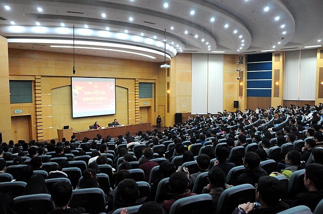 校领导金叶玲、吴建华、朱晓文、杨正亚、张有东,二级党组织书记、副书记,全体辅导员、班主任代表,学生处、招就处、团委全体人员,学生党支部书记、学生党员、骨干代表参加宣讲会。